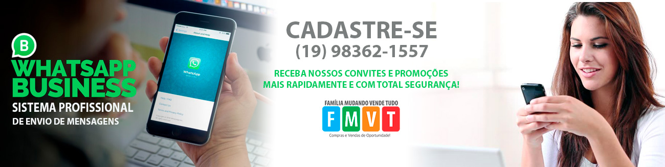 WhatsApp o aplicativo lider de mercado, multiplataforma de mensagens instantâneas e chamadas de voz para smartphones. Além de mensagens de texto, os usuários podem enviar imagens, vídeos e documentos em PDF, além de fazer ligações grátis por meio de uma conexão com a internet. Nós do FMVT temos um canal de WhatsApp Empresa, e utilizamos um módulo automatizado usado somente para enviar aos cadastrados todos os nossos convites, promoções e comunicados. ATENÇÃO: NÃO REALIZAMOS ATENDIMENTOS POR CANAL Para falar conosco utilize os fones disponíveis . Seria importante colocar que NÃO É UM GRUPO DE MENSAGENS, e que seu número de telefone é mantido em sigilo.